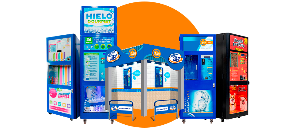 En A Granel 24-7 inicia o complementa tu negocio de manera funcional e innovadora a través de nuestros equipos: Despachadoras Vending de Productos básicos y Centros de Venta de Agua a granel.